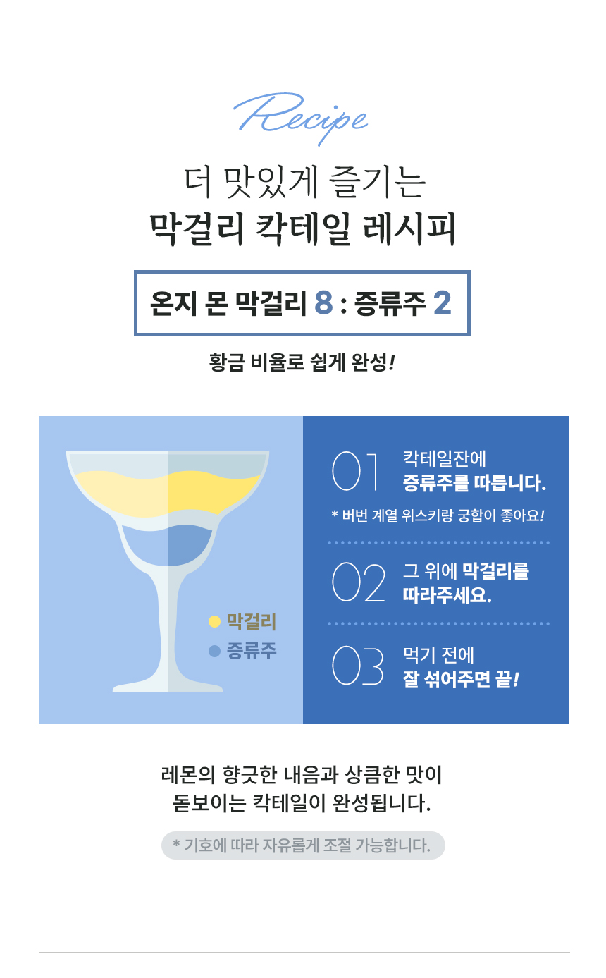 원재료 정제수, 찹쌀, 고구마, 감자, 레몬청